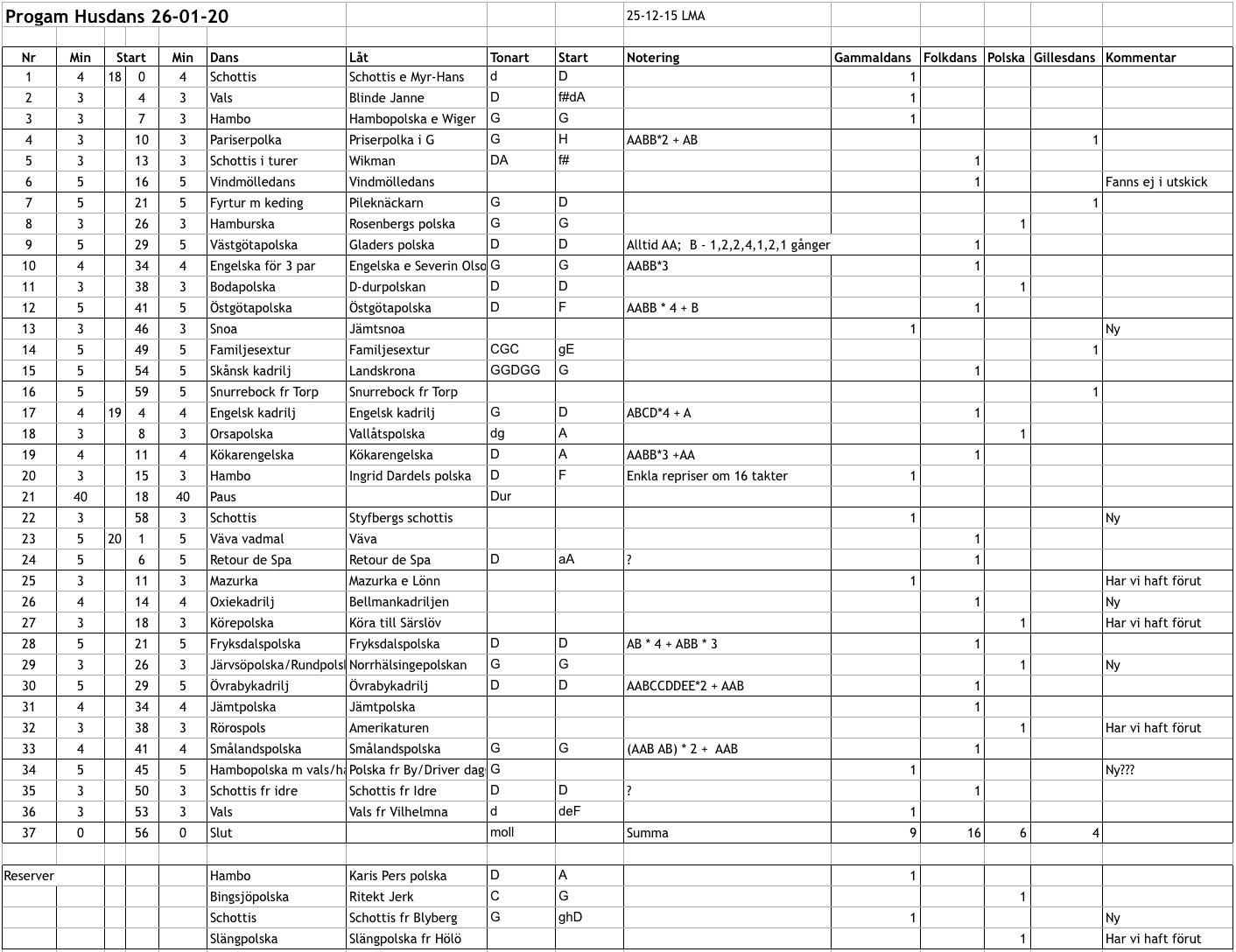 AF jullekstuga tidigare program 09-16 div info, tider => /af16 ... (färglagt, inkl dansbeskrivningar, förslag noter, repriser...) ...