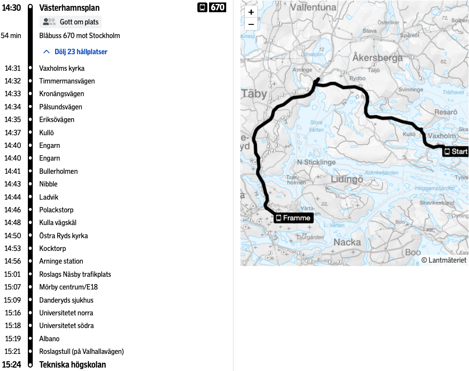 => gada.se/sl251121vaxh-kth1430.png (670 fre 1v senare, Arninge stn g ny hpl, därifrån även 676 mot KTH..) // EJ identifierade sön kväll.. Busskuren slängd..