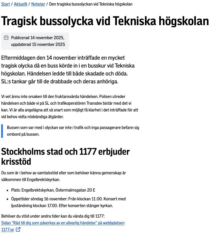 Uppdaterad 2025-11-14 klockan 17:33 /(nu 19h) gada.se/slinfo251116kl23.png (ej mkt info) polisen.se .. inget om olyckan syns