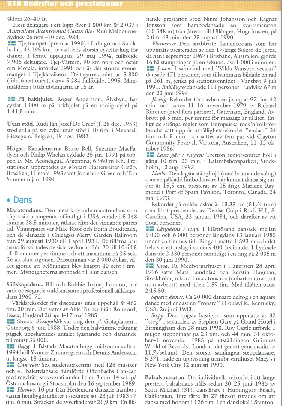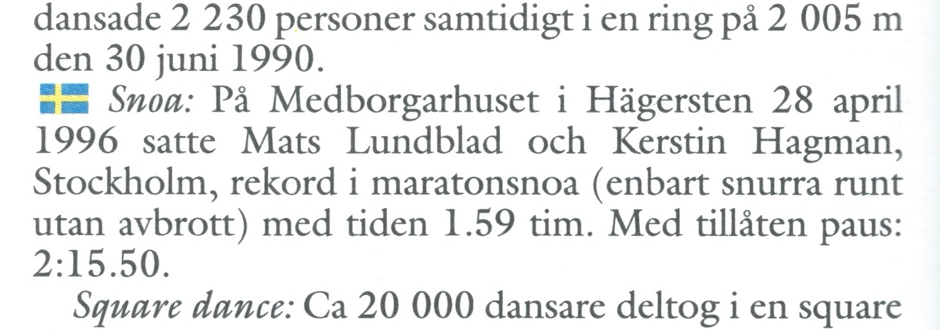 (världsrekord: Mats Lundblad och Kerstin Hagman, se Guinness 1992-2000, därefter ändrades bokens upplägg mot mer "mass-rekord" etc)