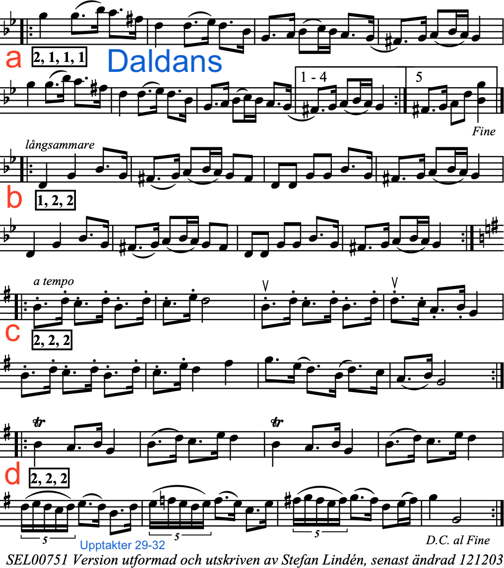Daldans Daldans DaldansR Daldans*<= Daldans*(SLi taktindeln fel) Daldans+ GmG 2122 1222 1222 1x 4m07s Takt: a+b 130, c+d 144 => 3m51s =