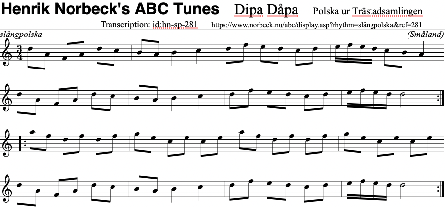 t ex: abb ab abb abab bslow Smålandspolska SAJ: aab ab aab aabb b /131112TisHus A-melodi: SmålandUR* A 3(aabb)aslow 2m12s