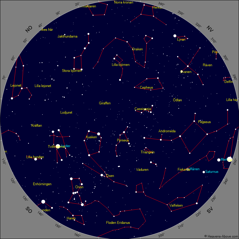 Stjärnkarta t ex 20 feb kl 1730 = /wholeskychart260220kl1730.png => Merkurius, o Venus(mkt lågt, fri sikt mot horisonten!) ca 20° till vänster om väst